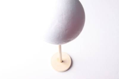 1. V polystyrenové kouli si označíme střed a uděláme dírku.