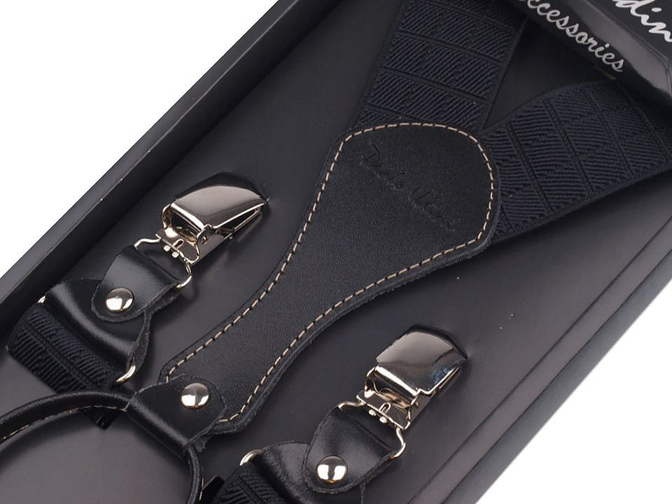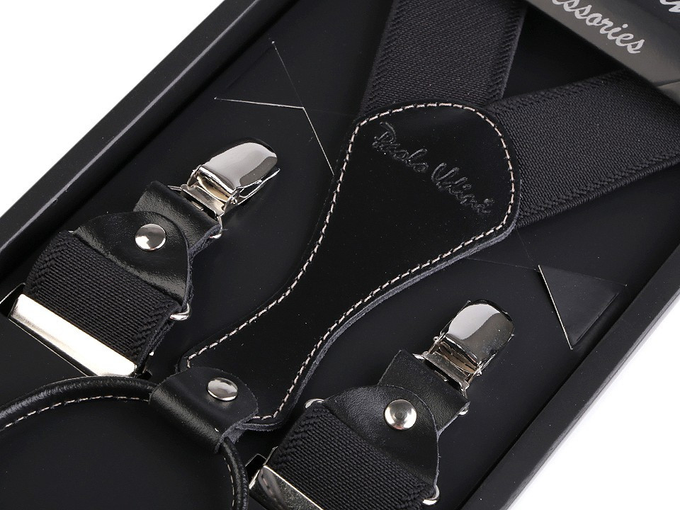 Elegantní pánské šle Paolo Udini s možností regulace. Mají čtyři žabky - dvě vpředu a dvě vzadu. Dají se použít jak pro denní nošení, tak jsou vhodné i k obleku. Můžete je nosit i k lyžařským a jiným sportovním kalhotám. Jsou kvalitní, vyrobeny z polyesteru a elastanu. Mají dárkové balení v krabičce. Tyto pánské kšandy budou ideálním dárkem pro muže, kteří mají rádi styl.
