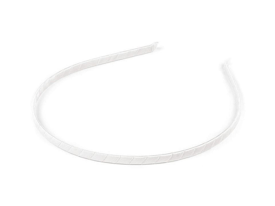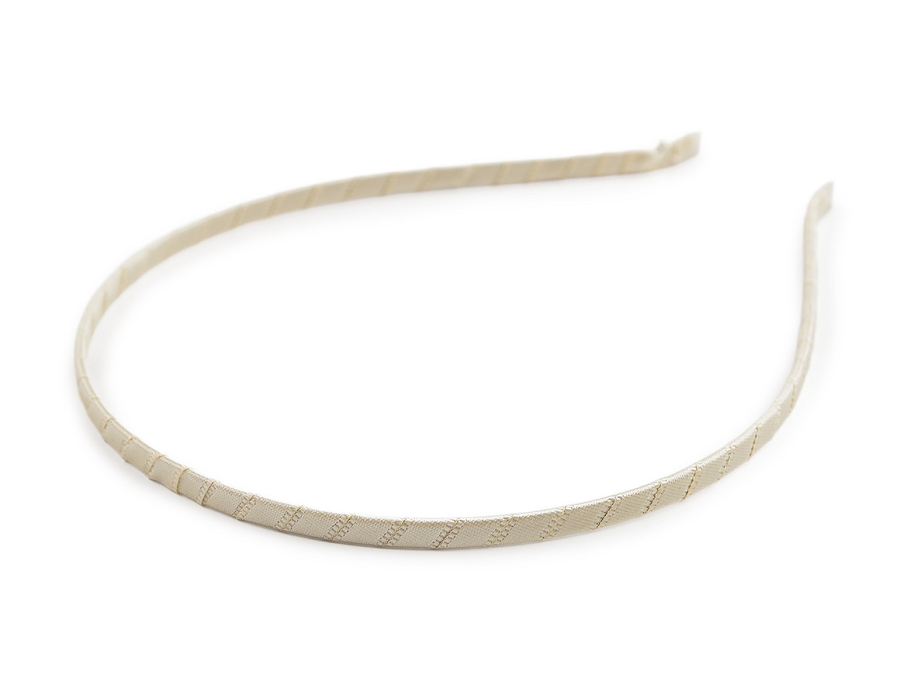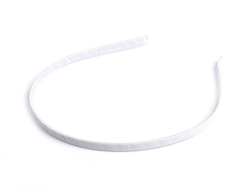 Šíře 0,5 cm. Kovový korpus čelenky je po celé délce pevně omotán saténovou látkou.