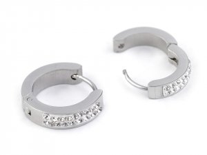 Kvalitní náušnice z nerezové oceli se hodí ke každodennímu nošení. Skvěle doplní byznys styl oblékání, jeansovou módu i ležérní outfity. Z čelní, pohledové strany jsou ozdobené dvěma řadami broušených kamínků, které se oslnivě třpytí.