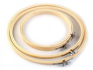 Vyšívací kruhy jsou vyrobené ze světlého bambusu. Mají kovový stahovací šroubek, pomocí něhož přichytneme vyšívací předlohu.