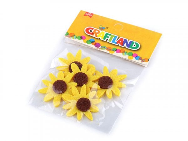 Květy z filcu / plsti se hodí k přišití i nalepení. Využijete je v mnoha výtvarných technikách.