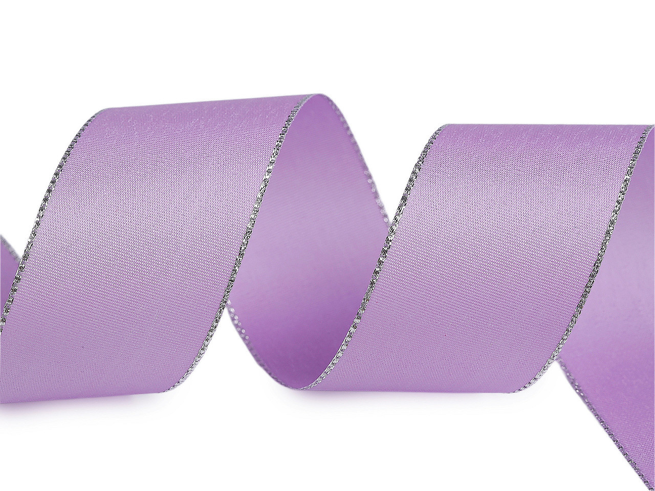 Stuha taftová s lurexem šíře 40 mm - 502 fialová sv. stříbrná