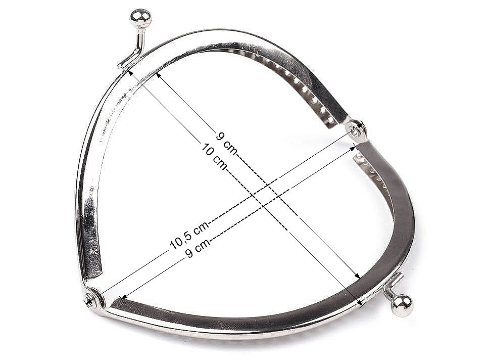 Rámeček na výrobu kabelek a tašek se zapínáním. Vnitřní rozměry rozvoru rámečku jsou 10 x 8,7 cm, vnější 10,3 x 12 cm. Rozměr 6x10,3cm znamená 6cm výšku zavřeného rámečku a 10,3 cm je délka rámečku.