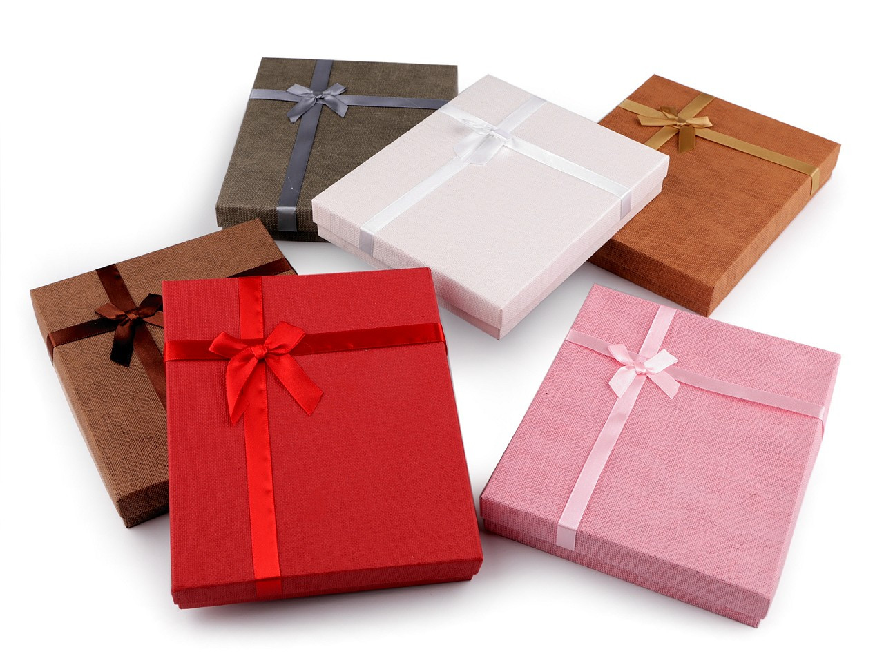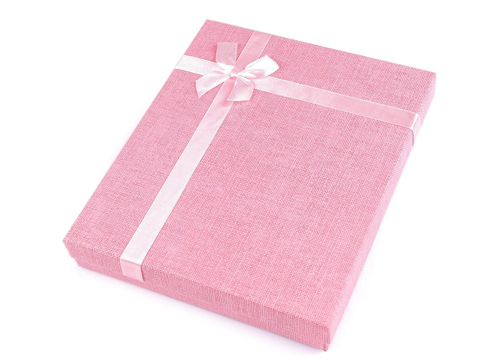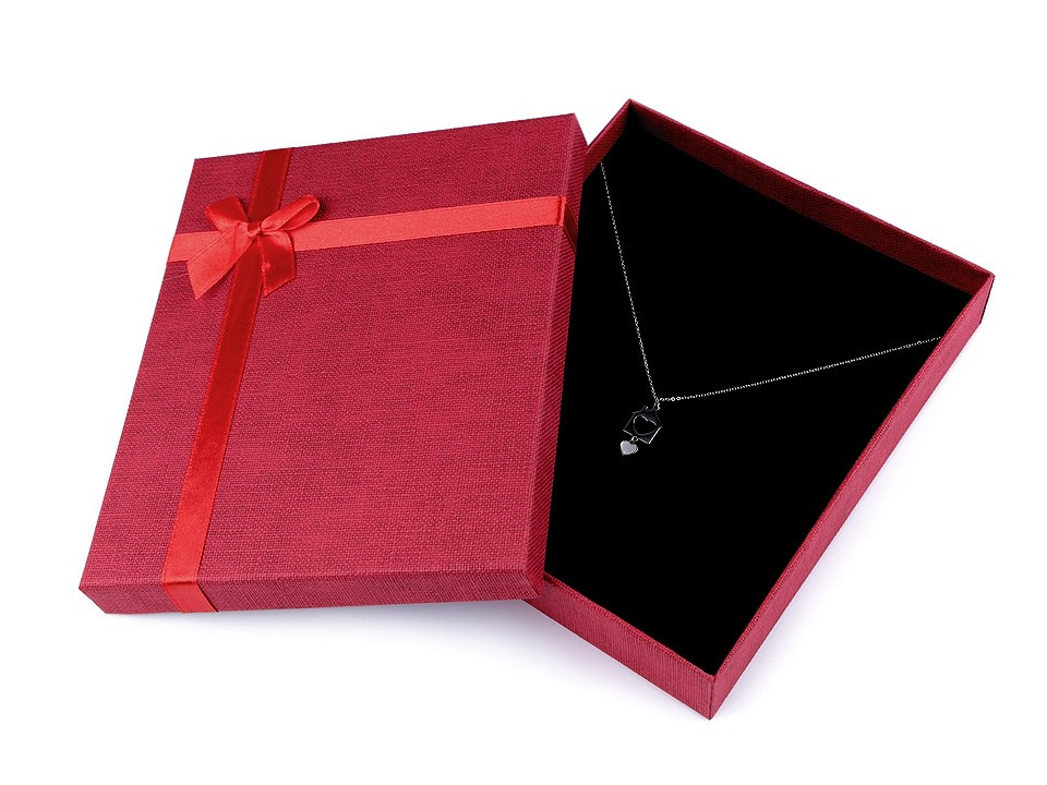 Papírovou krabičku využijete na celou sadu šperků - náhrdelník, náušnice, prsten i náramek. Uvnitř je molitanová výplň s průřezy, která se dá vyjmout. Krabička je pevná a víčko je ozdobené saténovou mašlí.