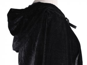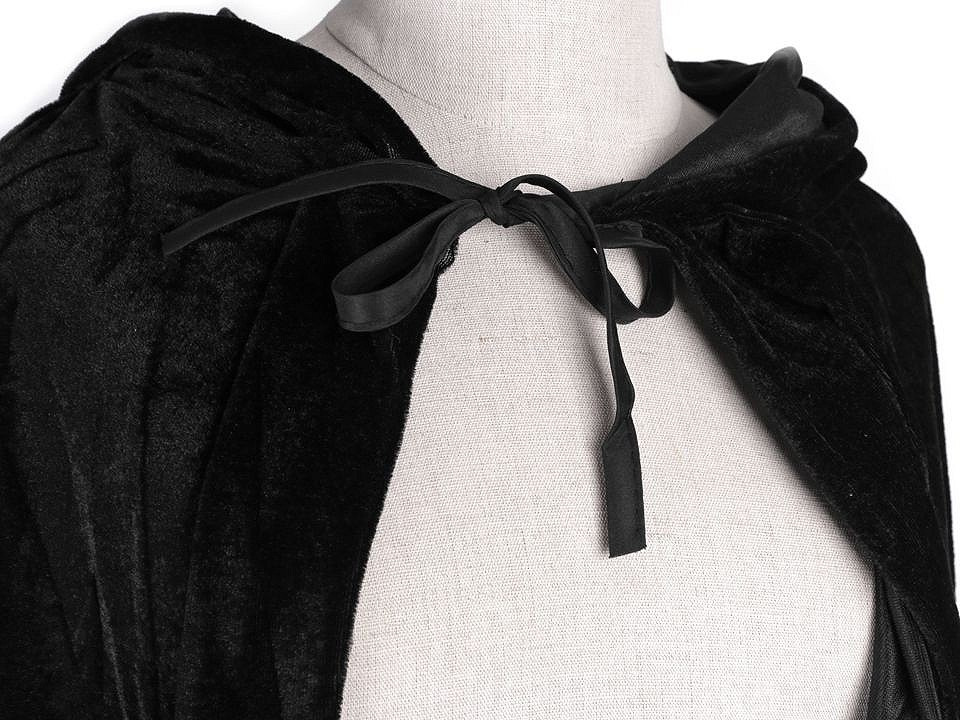 Karnevalový plášť s kapucí využijete ke kostýmu černokněžníka, kouzelníka, loupežníka, upíra apod. Je sametový a váže se pomocí šňůrek.