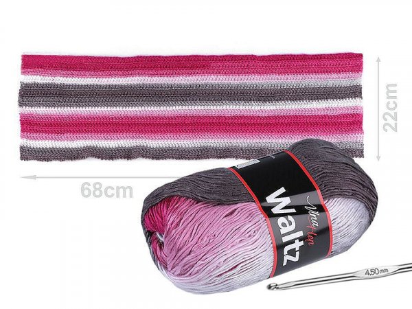 Příze Waltz si vás získá svým barevným efektem. Materiál je velice příjemný a měkký. Z příze můžete uplést či uháčkovat svetry, šály, čepice, rukavice, plédy apod.