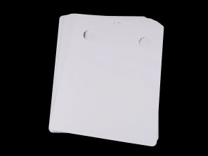 Velká závěsná karta se používá pro úhledné vystavení nebo zabalení šátků. Je z pevného křídového papíru, nahoře má 2 otvory na protažení šátku a 1 otvor pro zavěšení na prodejní stojan.
