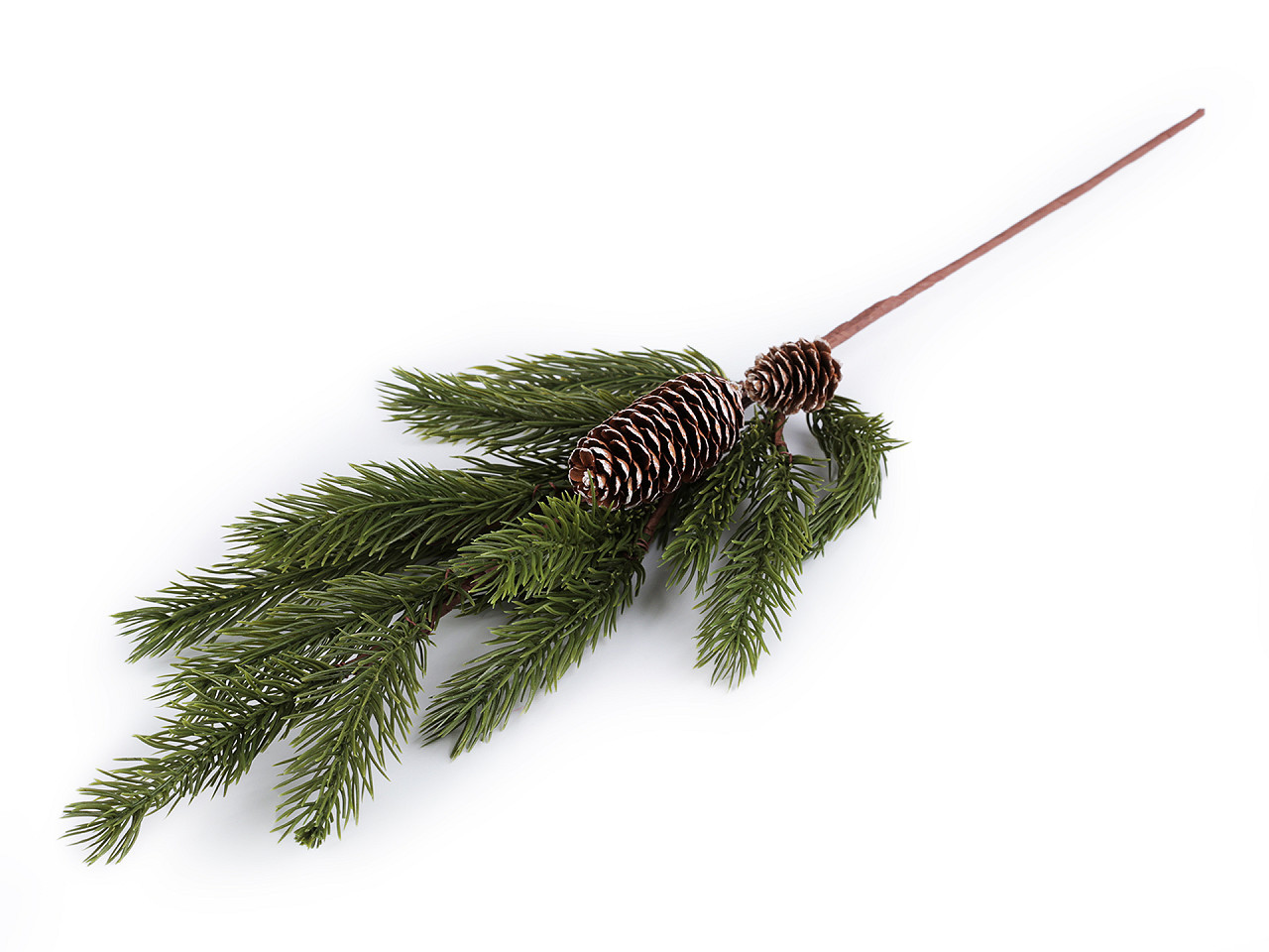 Dekorační větvičku borovice doplňují přírodní šišky. Díky drátu uvnitř ji můžete tvarovat. Větvička vynikne ve vázách, truhlících nebo na sváteční vánoční tabuli.