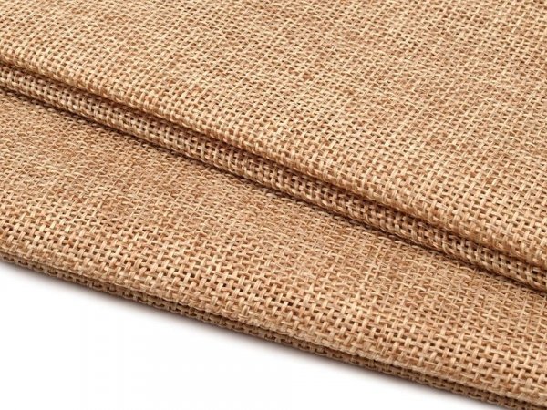 Látka je imitací pytloviny. Je lehká, pevná, jemná a na dotek příjemná. Není obšitá.