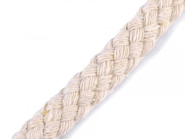 Bavlněná šňůra je splétaná, pevná a odolná. Využijete ji na výrobu dekorací nebo jako ucha na tašky. Je vhodná také do tunýlků kapucí mikin, tepláků nebo bund.