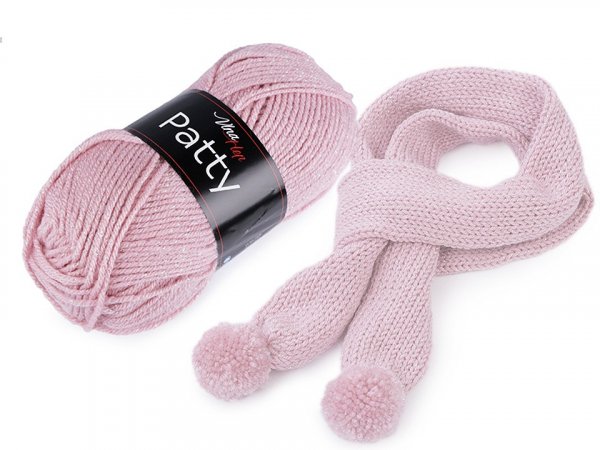Pletací příze Patty působí díky lurexu zajímavě a má jemný třpyt. Je příjemná na dotek. Můžete z ní uplést či uháčkovat svetry, šály, čepice nebo rukavice.