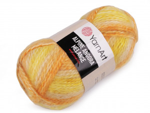 Příze Alpine angora melange si vás získá svými barevnými přechody. Díky podílu vlny vás krásně zahřeje. Z příze můžete uplést či uháčkovat svetry, šály, čepice, rukavice, plédy apod.