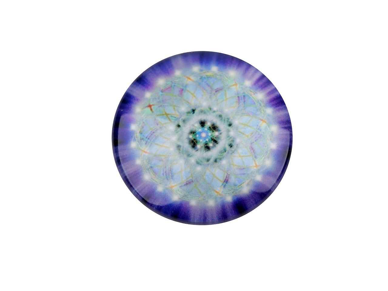 Kulatý skleněný kabošon s motivem mandaly má precizní propracování. Díky tvaru vypouklé čočky obrázek krásně vynikne. Kabošony jsou vhodné k nalepení do kovového lůžka nebo k obšití korálky a rokajlem. Pro přilepení kabošonu je vhodné použít lepidlo na lepení kamínků.