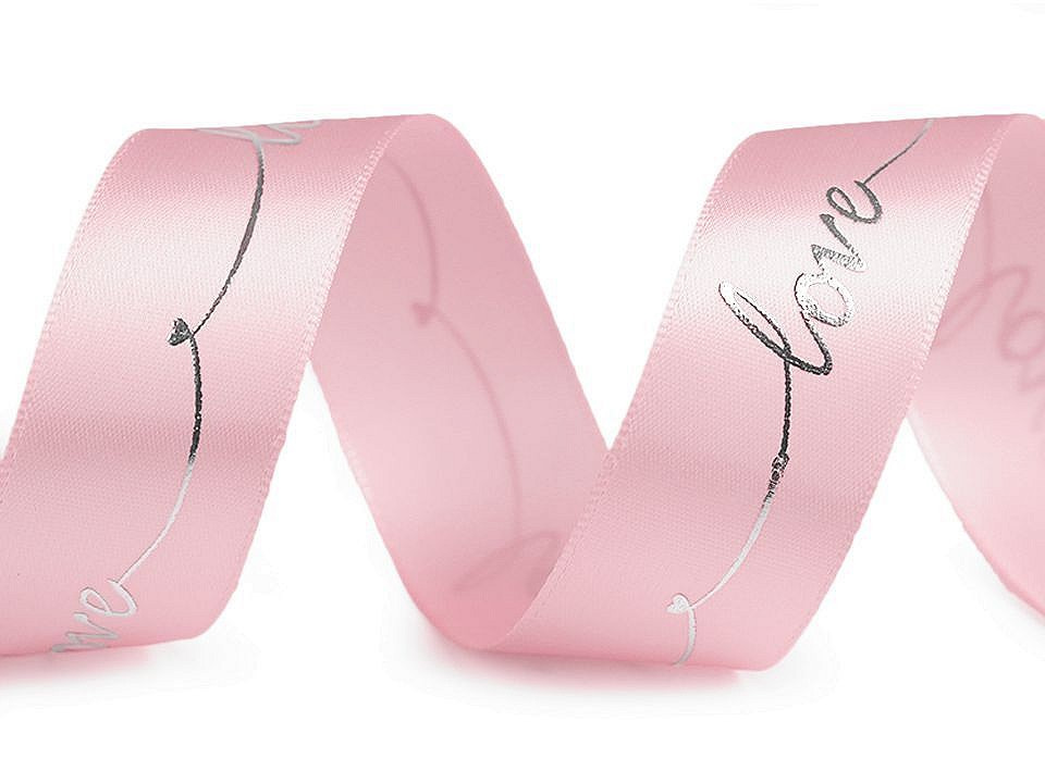 Stuha s metalickým potiskem love je velice romantická. Hodí se k různým dekoračním účelům. Je jednostranná.
