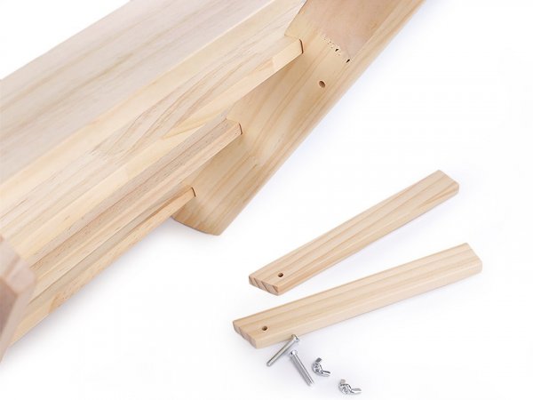 Stojan se dá snadno složit a rozložit pomocí dvou šroubů a křídlových matic. Díky tomu je oblíbený i prodejci ve stáncích.