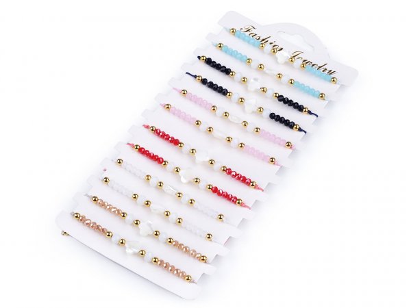 Náramky v mixu se prodávají jako sada 12 ks na papírové kartě k zavěšení.