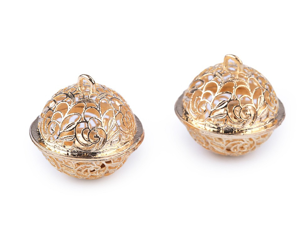 Kovové rolničky mají efektní filigránové výřezy. Jejich zvonění je hlasité a jasné. Rolničky využijete na výrobu různých ozdob a dekorací.