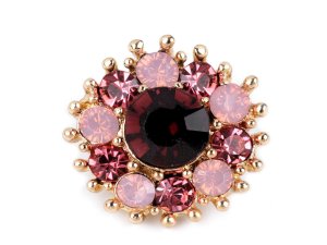 Malá kulatá brož je celá osázená barevnými broušenými kamínky. Je velice elegantní, připomíná květ. Můžete ji využít na běžné nošení i na společenské události. Skvěle ozdobí oděvy, kabelky, klobouky a čepice, hodí se k ozdobnému sepnutí šátku. Na zadní straně má brožový špendlík.