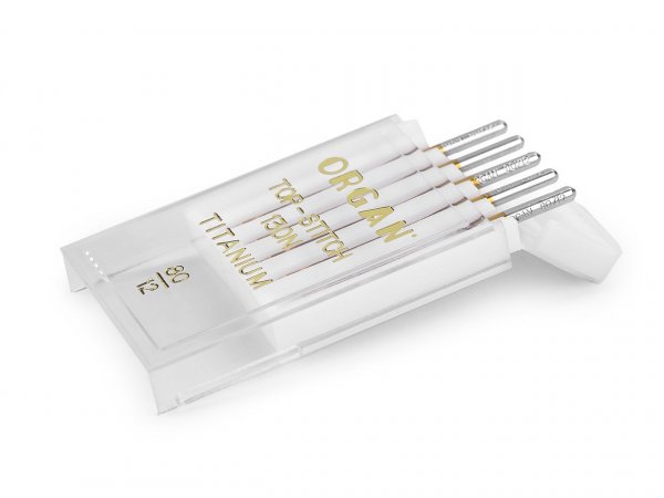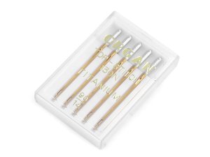 Strojové jehly Top Stitch Titanium využijete pro šití silnými nitěmi při extrémních výkonech. Mají větší a delší ouško, které má větší vzdálenost od dříku. Titanová povrchová úprava zaručuje delší životnost jehel.