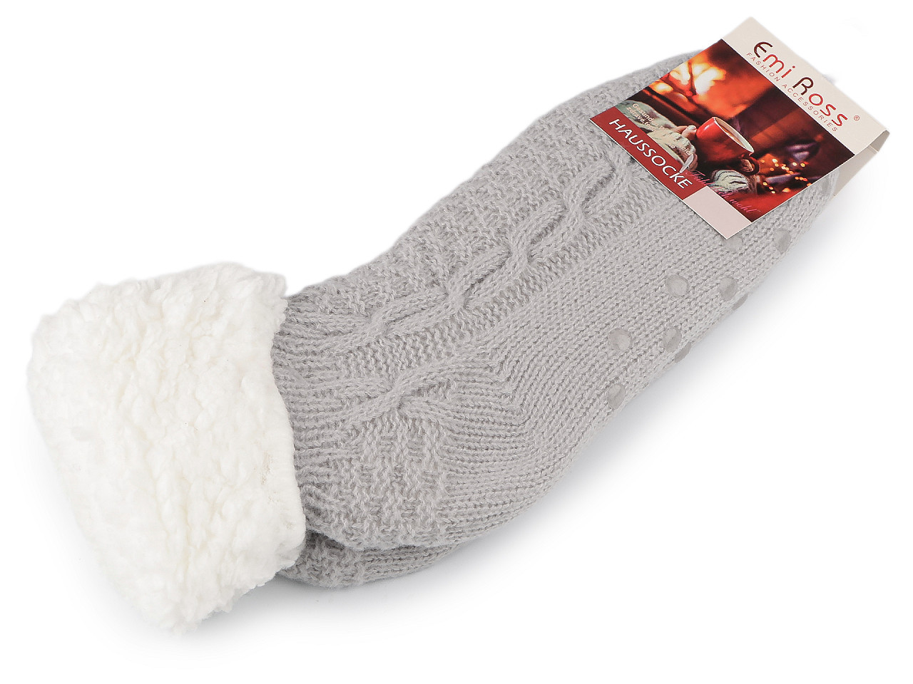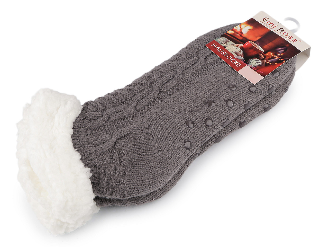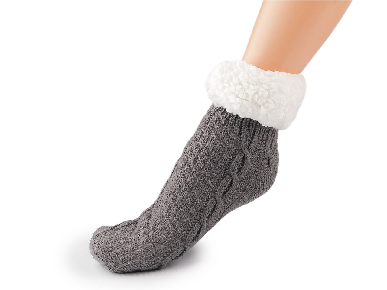 Dopřejte svým nohám maximální pohodlí i v chladných dnech. Tyto krátké zimní ponožky s protiskluzem zahřejí díky hebké vnitřní podšívce, která věrně imituje vlnu. Pletený vršek dodává ponožkám stylový vzhled a protiskluzové gumové plošky na chodidle zabrání uklouznutí – perfektní i jako domácí obuv. Široký měkký lem zajistí pohodlné nošení bez otlaků. Skvělá volba pro teplé a bezpečné kroky doma i v zimním období.