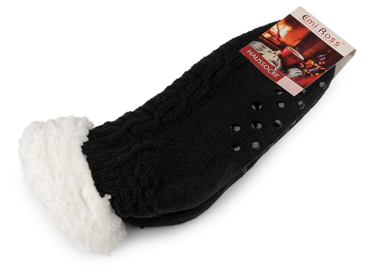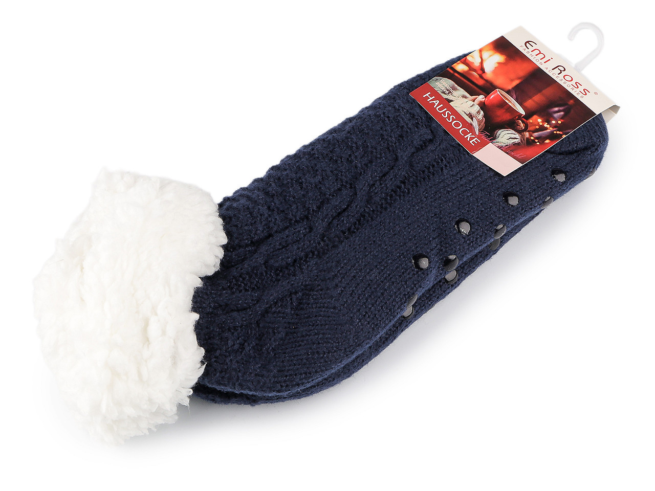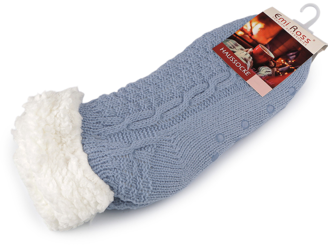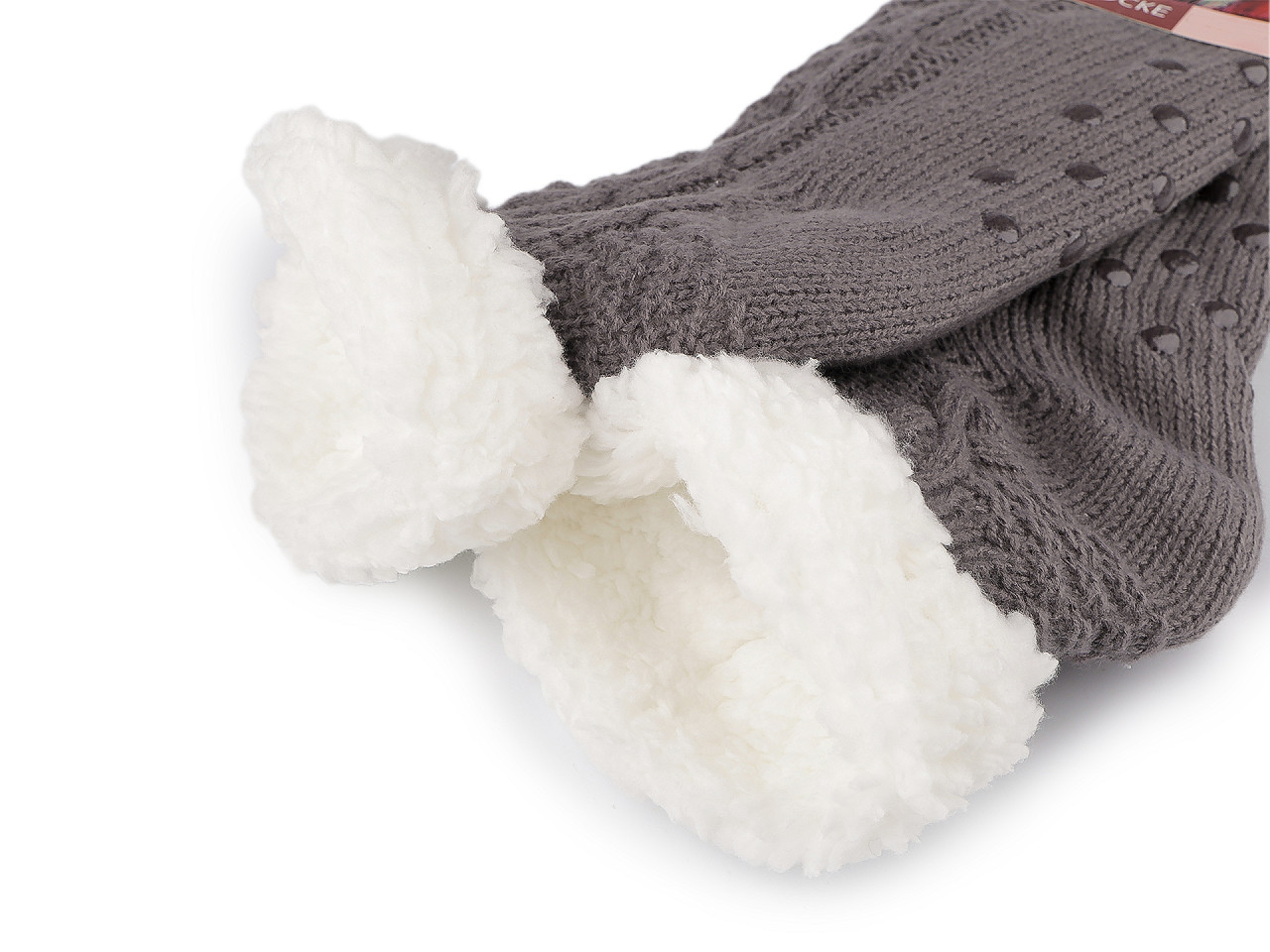 Dopřejte svým nohám maximální pohodlí i v chladných dnech. Tyto krátké zimní ponožky s protiskluzem zahřejí díky hebké vnitřní podšívce, která věrně imituje vlnu. Pletený vršek dodává ponožkám stylový vzhled a protiskluzové gumové plošky na chodidle zabrání uklouznutí – perfektní i jako domácí obuv. Široký měkký lem zajistí pohodlné nošení bez otlaků. Skvělá volba pro teplé a bezpečné kroky doma i v zimním období.