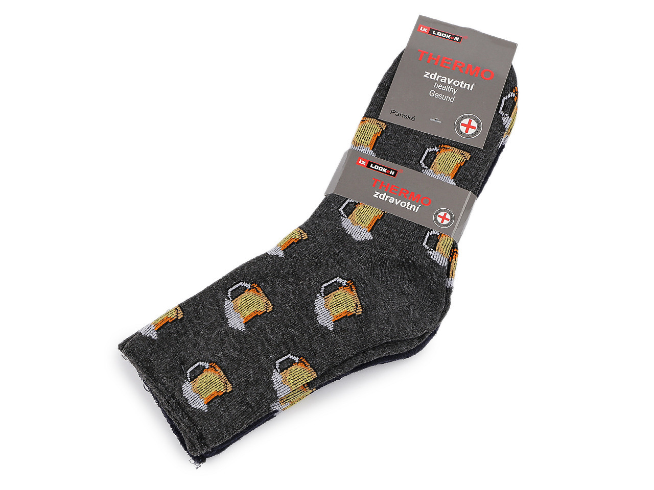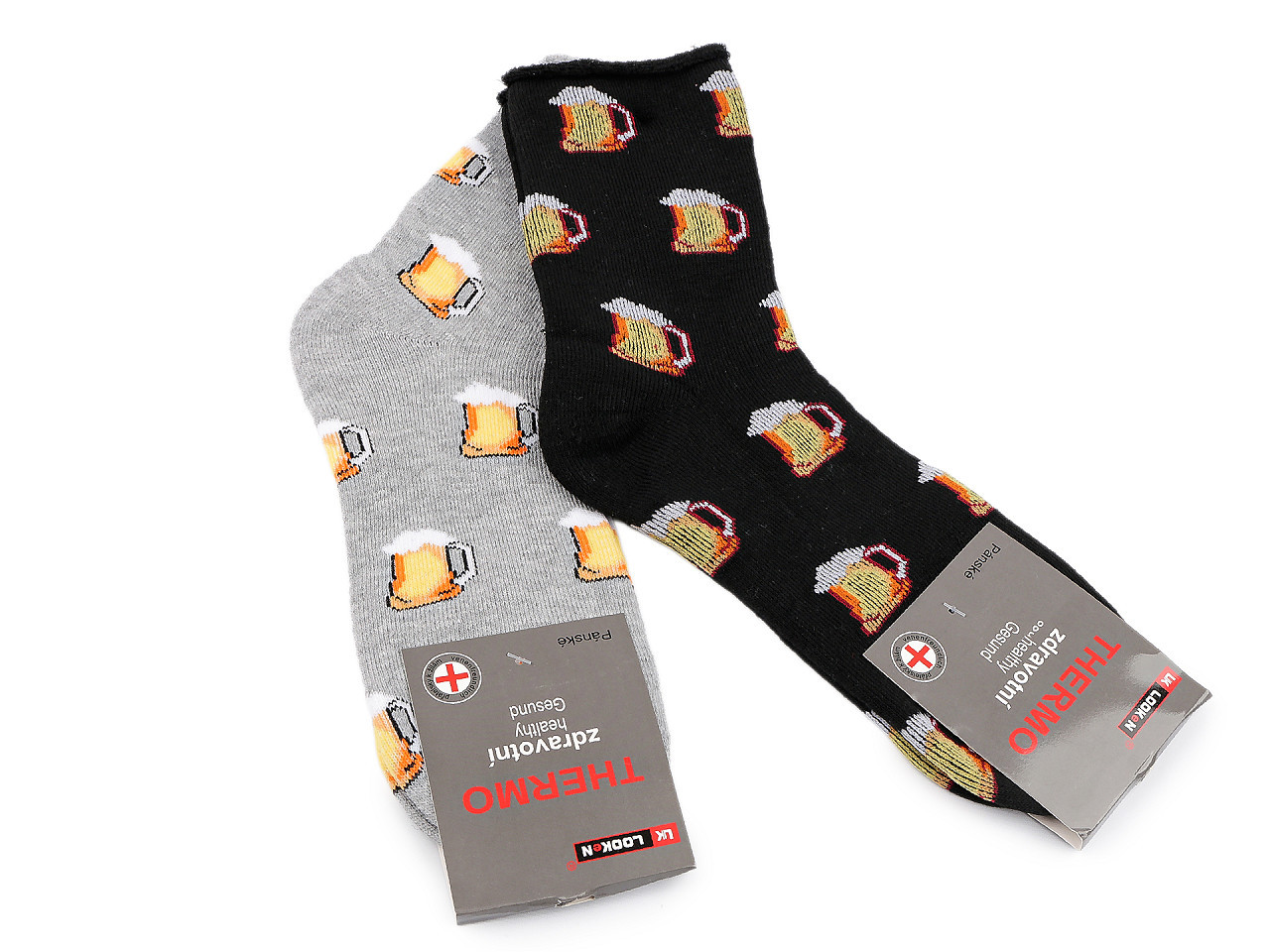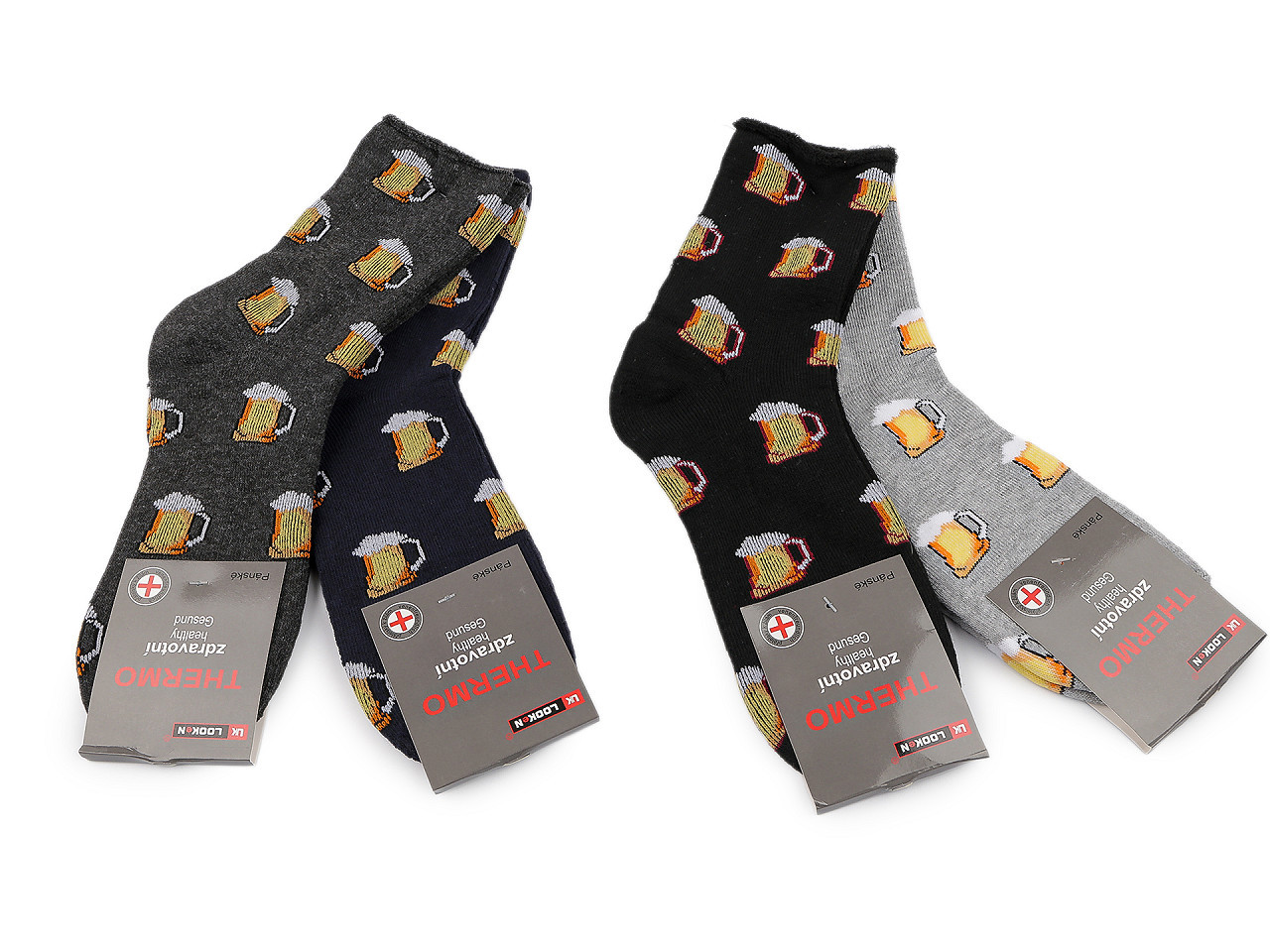 Pánské thermo ponožky se zdravotním lemem – motiv piva. Objevte pohodlí a styl v jednom. Tyto pánské thermo ponožky s originálním motivem piva vás udrží v teple i během chladných dní. Díky vysokému podílu bavlny jsou měkké, prodyšné a příjemné na nošení. Vnitřní froté vrstva zajišťuje extra hřejivost, zatímco plochý šev ve špičce eliminuje nepříjemné otlaky.