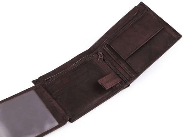 Luxusní pánská peněženka z pravé kůže má velice kvalitní provedení a chytrý design. Je pěkně a přehledně uspořádaná, lehká a příjemná na dotek. Povrch kůže je matný.