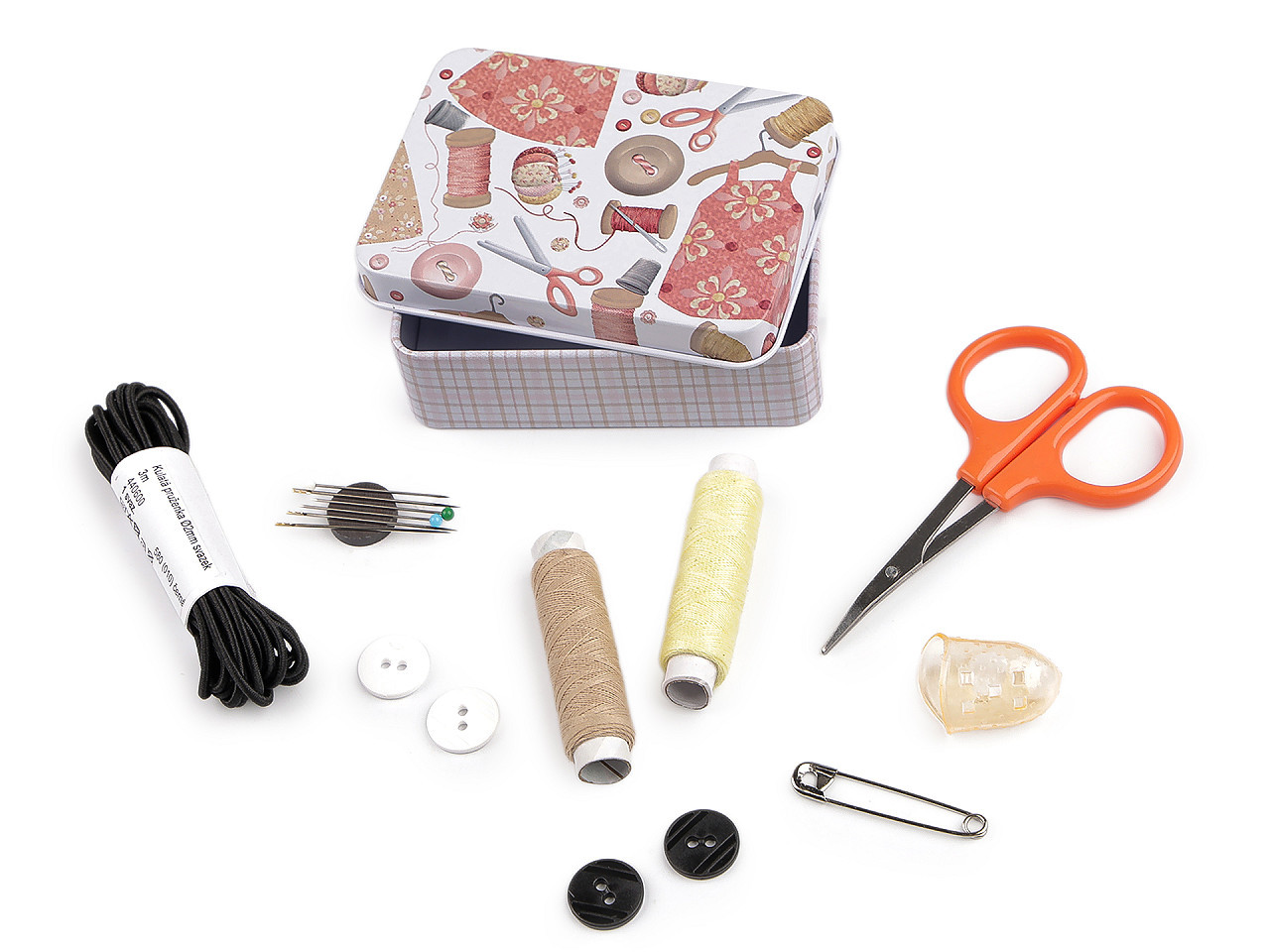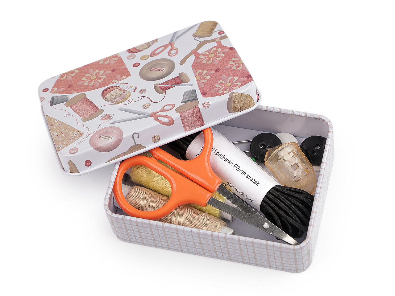 Šitíčko ve stylové plechové krabičce s krejčovským designem oceníte v každé domácnosti.