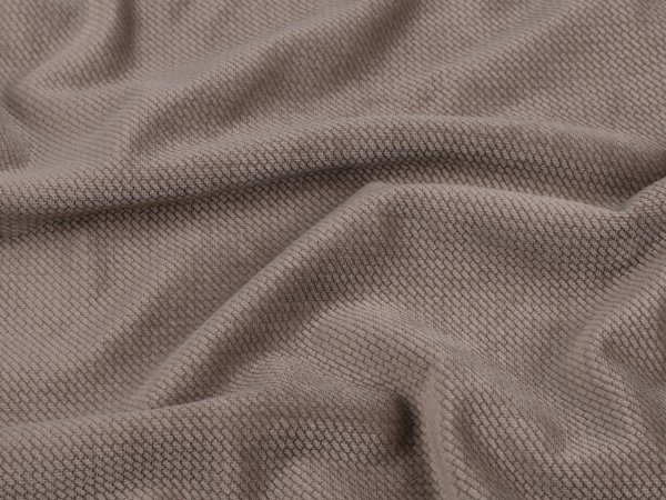 Velvet je hladký a příjemný na dotek, vzhledem trochu připomíná samet. Má strukturu cihliček a pruží po šíři. Velvet je vhodný na šití dek, polštářů, zavinovaček nebo hnízd pro děti. Můžete ho použít také na šití oblečení pro děti i dospělé.