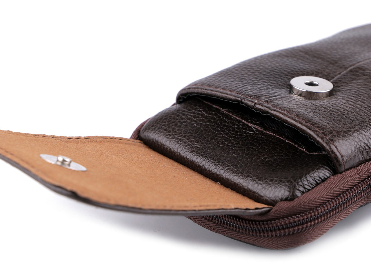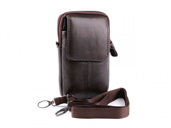 Pouzdro na opasek je vyrobené z pravé kůže. Je stylovým doplňkem pro muže. Díky odepínacího popruhu jej můžete nosit přes rameno, okolo krku nebo křížem jako crossbody tašku.