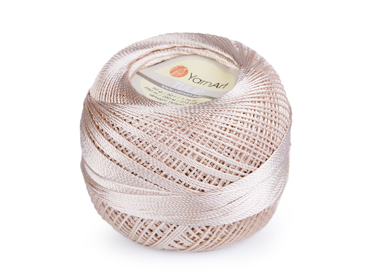 Příze Tulip vyniká vysokým efektním leskem. Je jemná a hladká. Využijete ji na háčkování, pletení, vyšívání (jak ruční, tak strojové), tkaní i kreativní tvorbu šperků.
