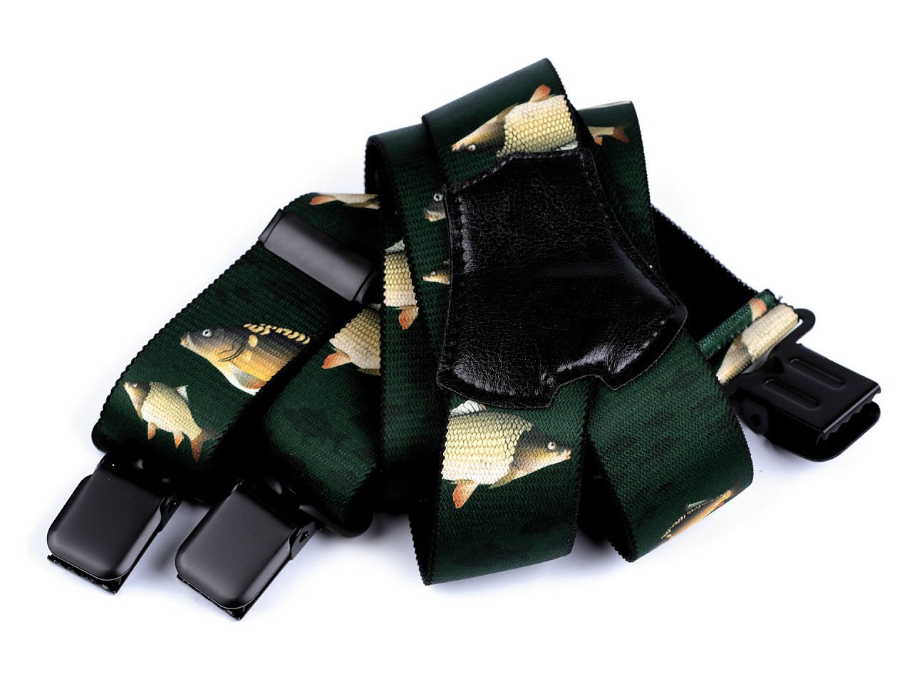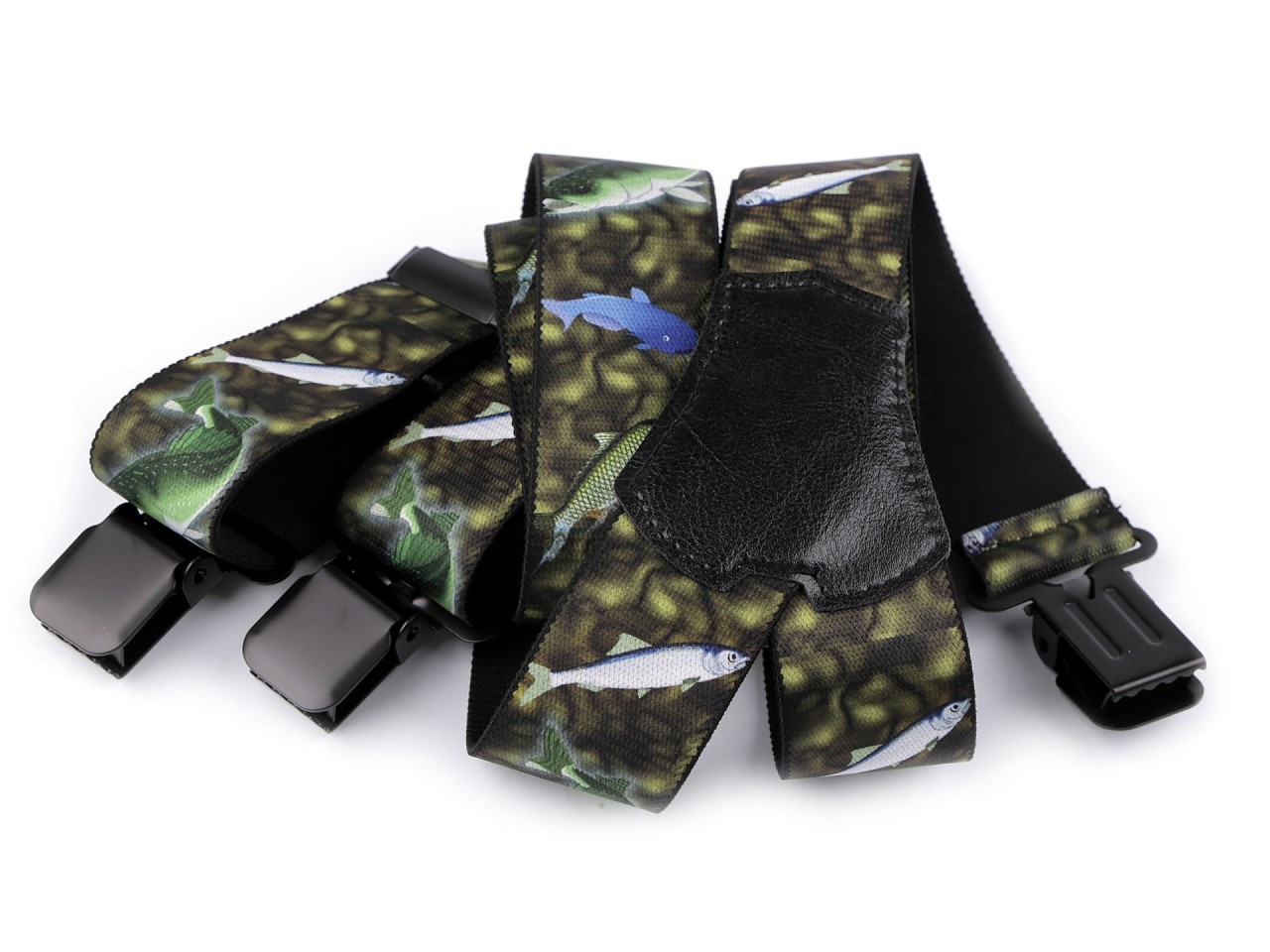 Kšandy s rybím potiskem potěší všechny rybáře. Kšandy bývají nedílnou a zároveň praktickou součástí jejich oblečení.