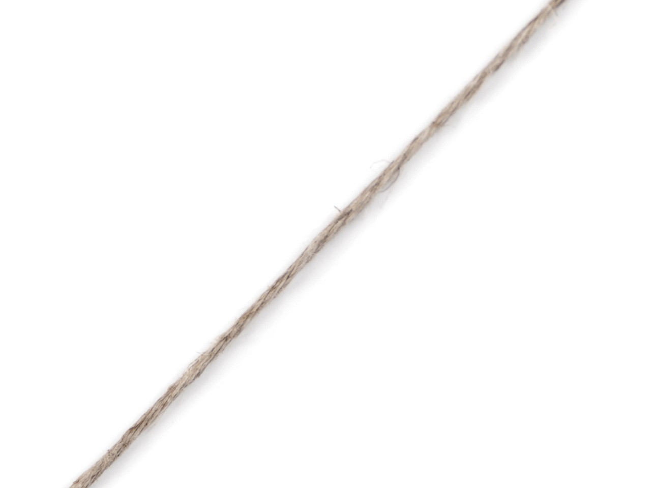 Lněný provázek – pevný pomocník pro kreativní tvoření i praktické použití. Tento lněný provázek je spletený z 8 tenkých vláken, což zajišťuje jeho vysokou pevnost a odolnost. Skvěle se hodí pro široké spektrum činností: využijete ho při šití, dekorování, balení dárků nebo zdobení sklenic s domácími produkty. Ideální je také pro výrobu originálních přáníček. Lněný provázek je přírodní, ekologický a univerzální materiál, který ocení každý milovník ručních prací či domácího tvoření.