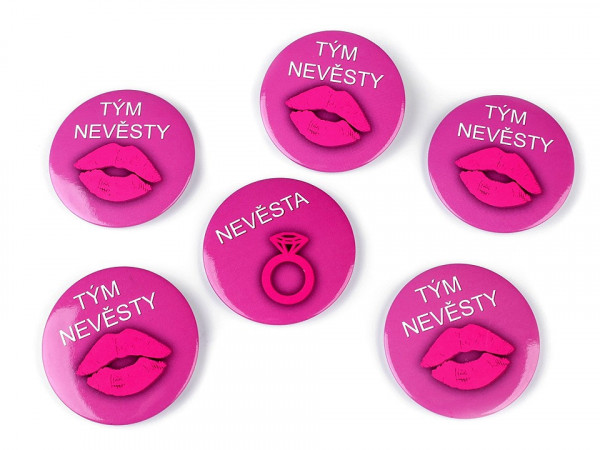 Sada placek je určená pro všechny dámy, které se zúčastní rozlučky se svobodou. Najdete mezi nimi i jednu pro nevěstu. Na zadní straně je špendlík, díky kterému budou placky na oděvu dobře držet.