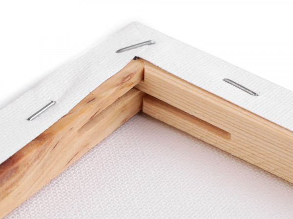Kvalitní malířské plátno ze 100% bavlny. Je vypnuté na dřevěném blind rámu. Na zadní straně je upevněné svorkami. Plátno je natřené univerzální bílou barvou, která zachovává vzhled plátna. Je vhodné na malování akrylovými a olejovými barvami. Pevné natažení přes hrany rámu umožňuje malovat i na boční hrany plátna, hotový obraz již není nutné dodatečně rámovat.
