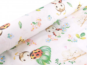 Bavlněná látka s roztomilými dětskými motivy je vhodná na šití polštářů, dětského povlečení, závěsů, pytlíků, tašek, mantinelů do postýlek apod.