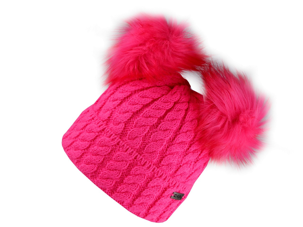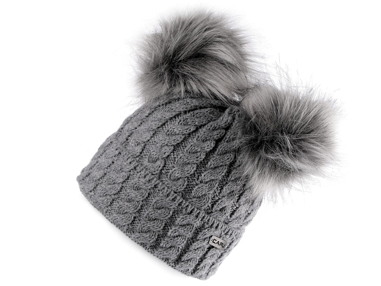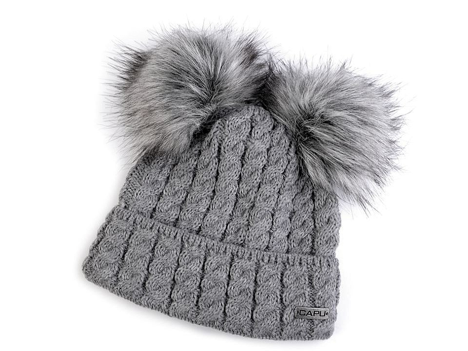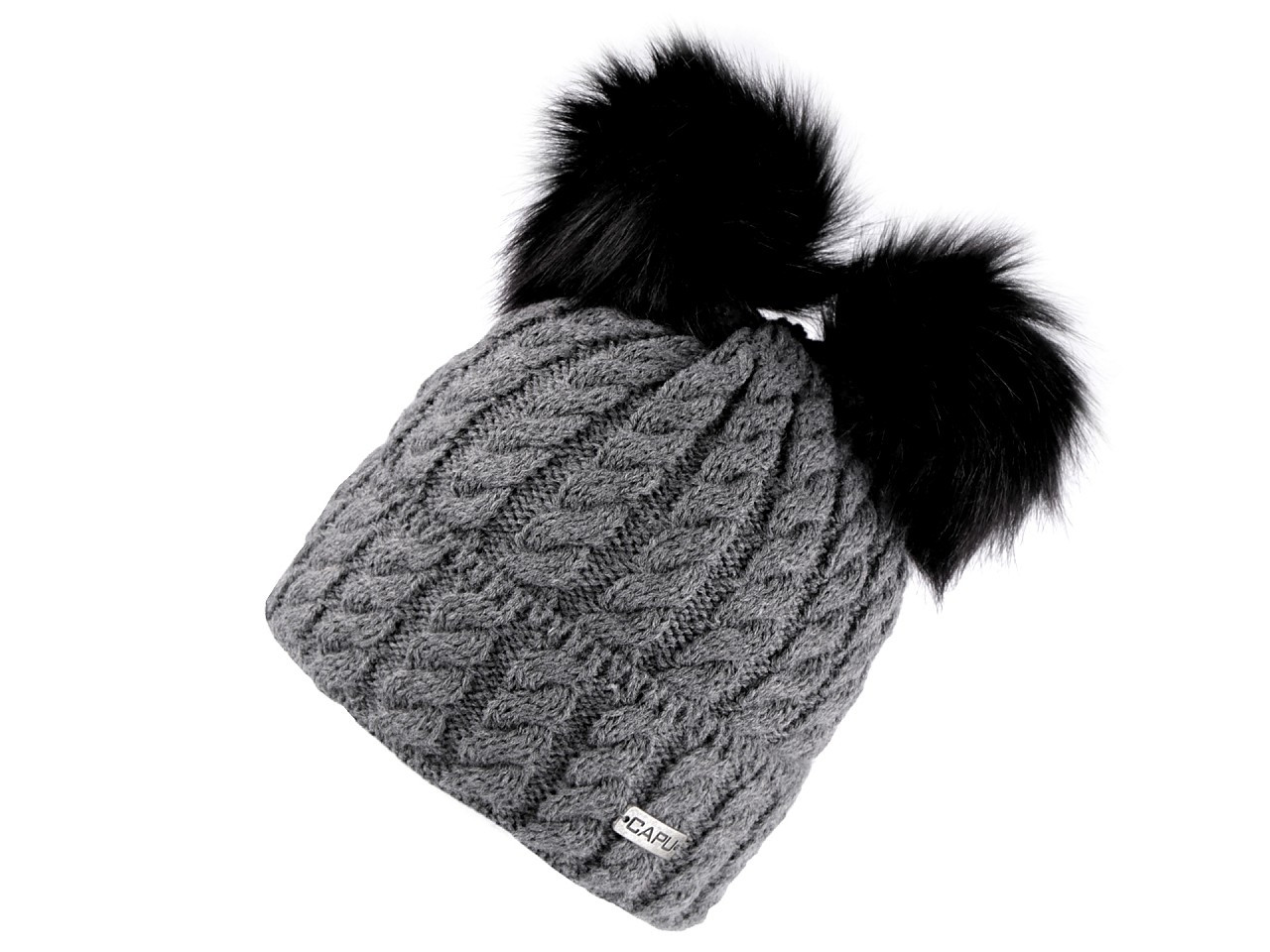 Dětská pletená čepice vás zaujme 2 velkými bambulemi z umělé kožešiny. Na boku má kovový štítek s nápisem "CAPU". Pletenina má copánkový vzor a je vyrobena z příjemného materiálu. Uvnitř je zateplená pásem z fleecu, zahřeje vás i v těch největších mrazech.