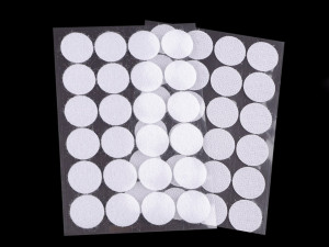 Suchý zip ve tvaru koleček je samolepicí. Můžete jím připevnit nápisy, obrázky, zalepit plastové obálky, krabičky apod. Využijete ho i k výrobě quiet booku pro děti.