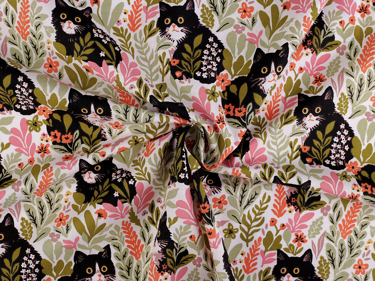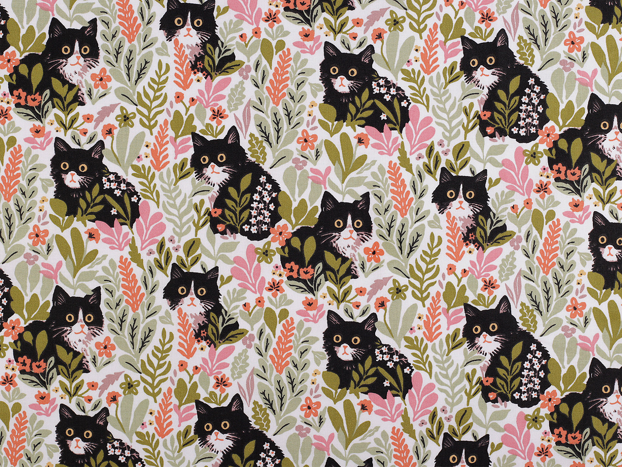 Bavlněná látka plátno s motivem koček – hravý design pro kreativní šití. Objevte kvalitní bavlněné plátno s roztomilým potiskem koček, které dodá vašim projektům jedinečný a veselý vzhled. Tato přírodní látka je ideální pro šití polštářů, povlečení, závěsů, tašek, pytlíků, mantinelů do postýlek i dalších bytových dekorací a doplňků.