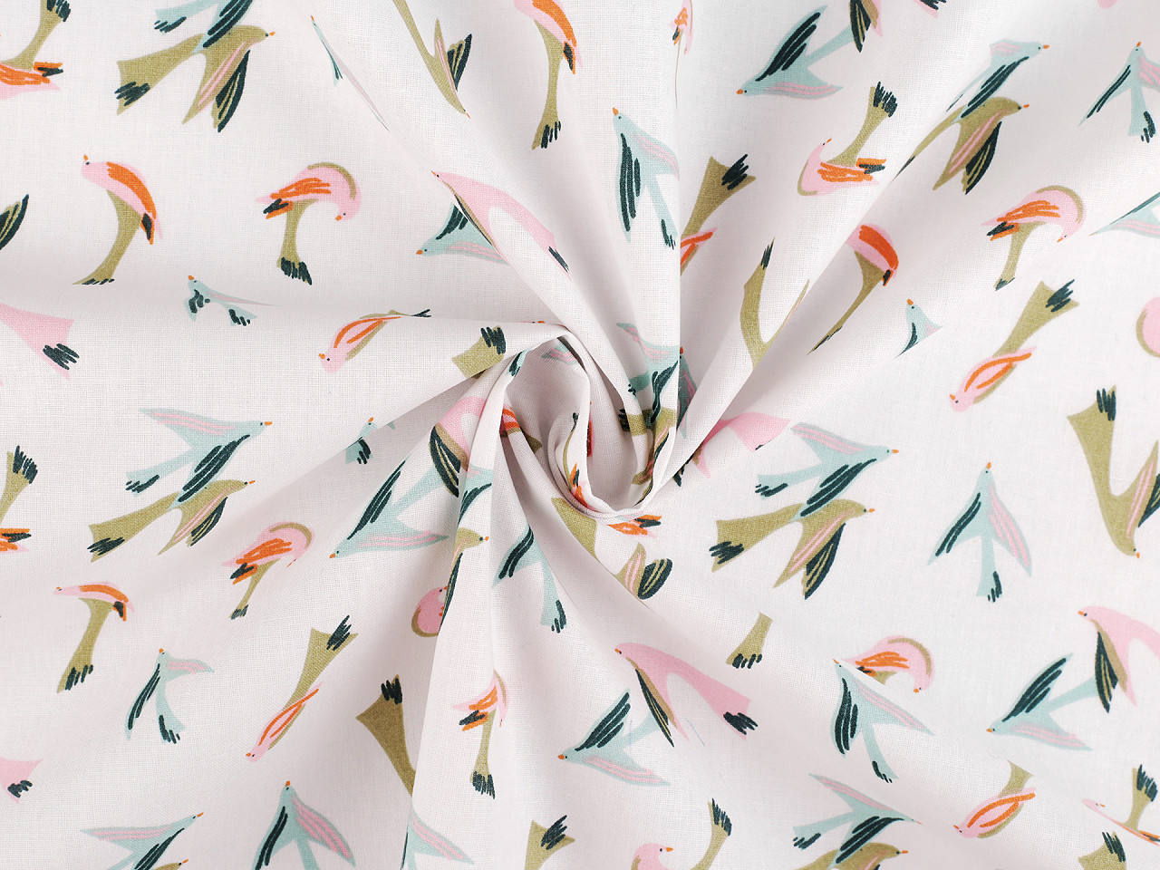 Bavlněná látka plátno – motiv drobných ptáčků. Objevte kouzelnou bavlněnou látku plátno s jemným designem drobných ptáčků, která je ideální pro výrobu originálních bytových doplňků i oděvů. Tento kvalitní přírodní materiál využijete na šití polštářů, povlečení, závěsů, ubrusů, tašek, mantinelů do postýlek a dalších dekorací, které dodají vašemu domovu útulnou atmosféru.
