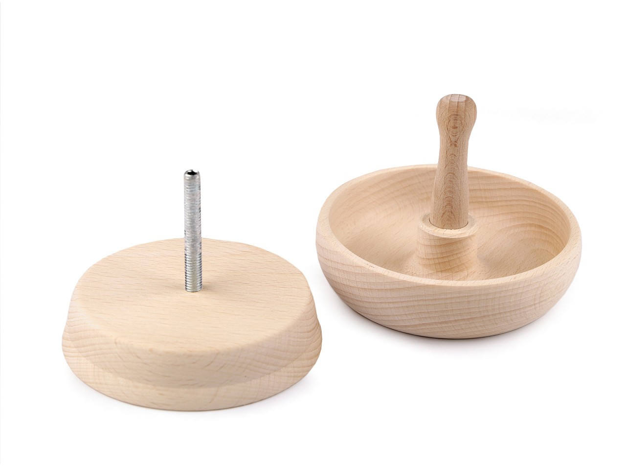 Dřevěný rotační navlékač využijete pro rychlé navlékání drobného rokajlu - skleněných perliček. Už žádné složité trefování do malé dírky. Rokajl stačí vsypat do misky (ne víc než do 2/3), roztočit, vložit nejlépe zahnutou jehlu dovnitř mezi korálky a navlékat se sám postarat o navlečení. Bude vás doslova fascinovat, jak rychle stoupá vzhůru a sám se navléká. Do jehly můžete dát různý návlekový materiál - silon, superlon, zkrátka na co jste zvyklí.