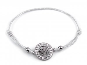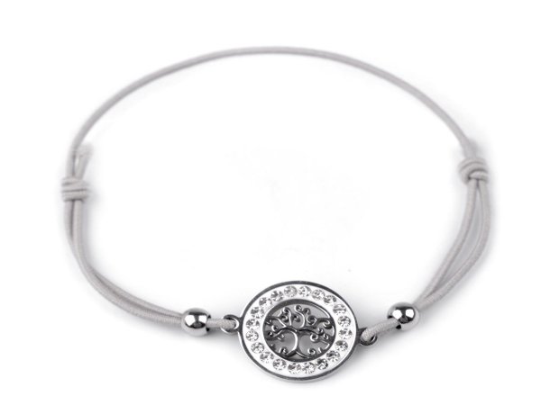 Pružný náramek s přívěskem stromu života má kovové části vyrobené z kvalitní nerezové oceli. Přívěsek je ozdobený jemnými broušenými kamínky, které se třpytí. Náramek má díky pružence univerzální velikost.