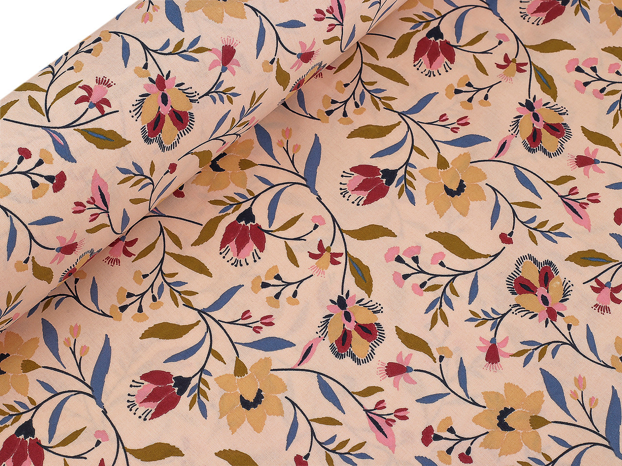 Bavlněná látka plátno – květinový motiv. Objevte krásu přírodního materiálu s jemným květinovým vzorem, který dodá vašim výrobkům svěžest a eleganci. Tato kvalitní bavlněná látka plátno je ideální pro šití polštářů, povlečení, závěsů, ubrusů, tašek i dalších bytových doplňků. Díky svému příjemnému povrchu a pevné struktuře je perfektní volbou pro milovníky přírodního stylu a detailní práce.