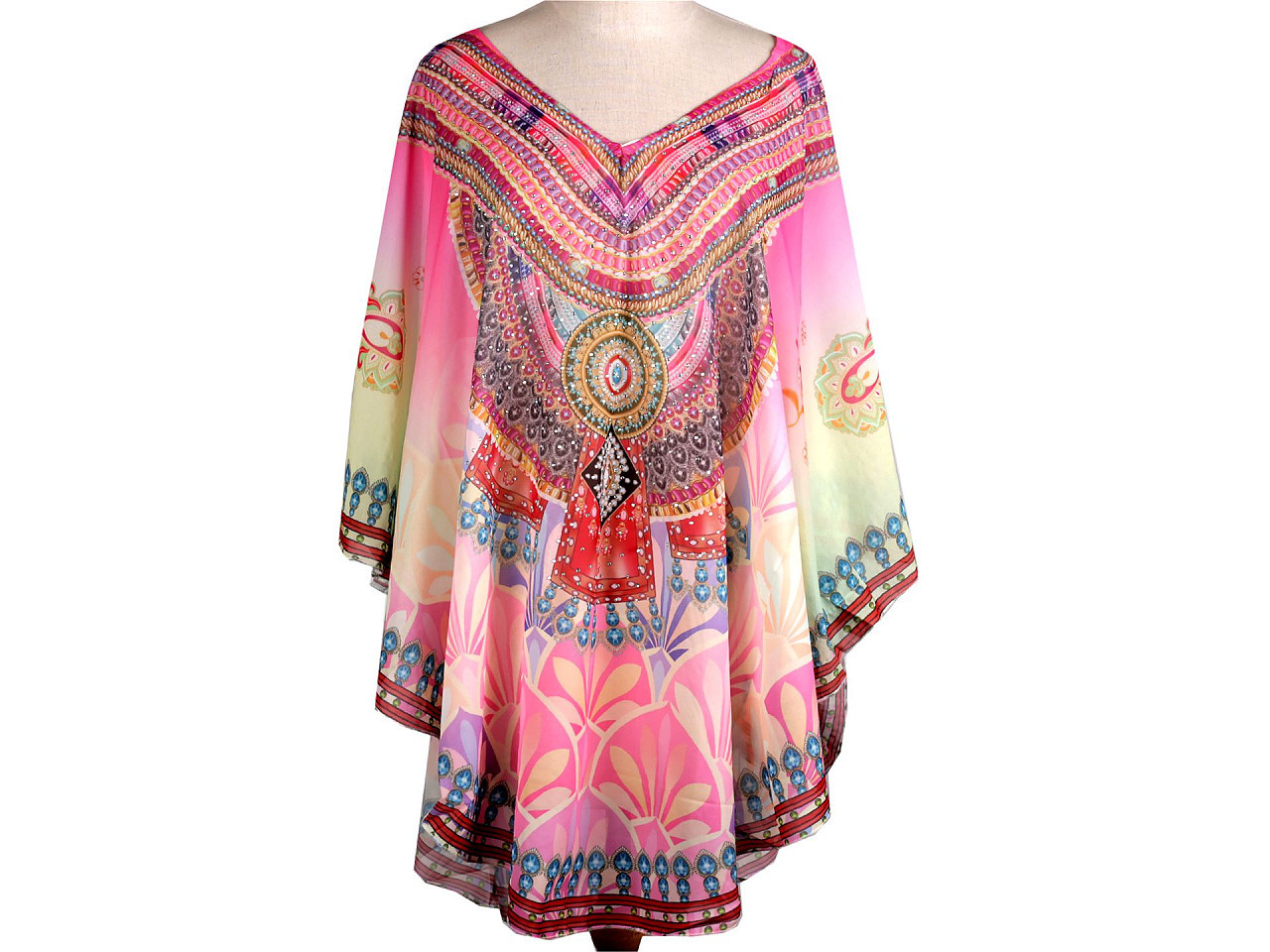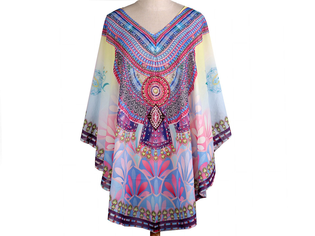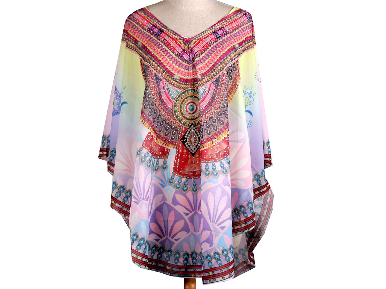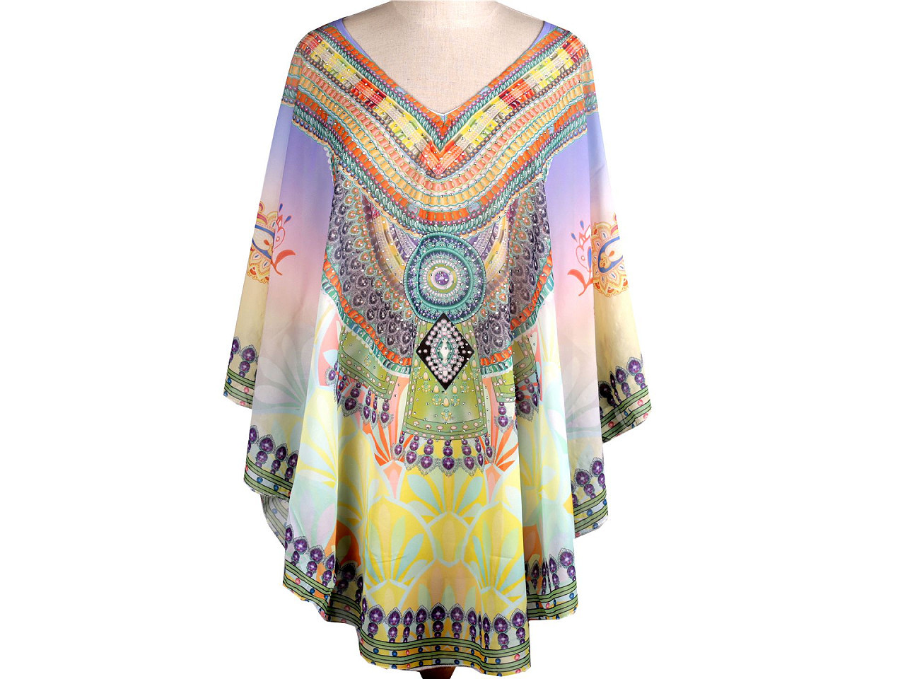 Elegantní pončo přes plavky – univerzální a stylové. Objevte lehké a prodyšné pončo, které perfektně doplní váš letní outfit. Ideální jako přehoz přes plavky – decentně zakryje, co je třeba, a zároveň působí svůdně a moderně. Díky univerzální velikosti se pohodlně přizpůsobí každé postavě. Třpytivé kamínky dodávají luxusní vzhled, takže můžete pončo využít i jako ležérní halenku na plážovou párty či procházku.