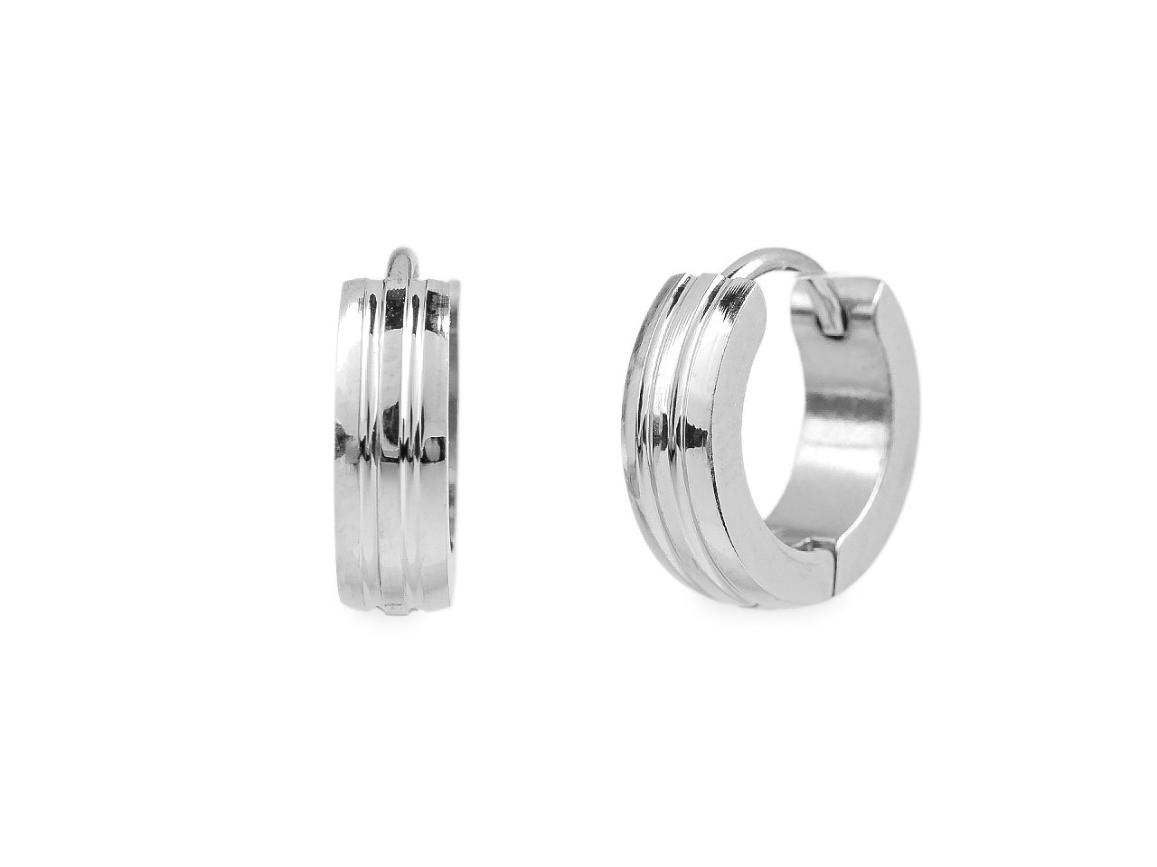 Elegantní náušnice z nerezové oceli – kroužky s proužkovým reliéfem. Dodejte svému vzhledu moderní eleganci s malými kroužkovými náušnicemi z prvotřídní nerezové oceli. Jemný reliéf proužků dodává šperkům nadčasový charakter, který se hodí k jakémukoli outfitu. Díky zacvakávacímu zapínání se snadno nasazují a pevně drží po celý den.