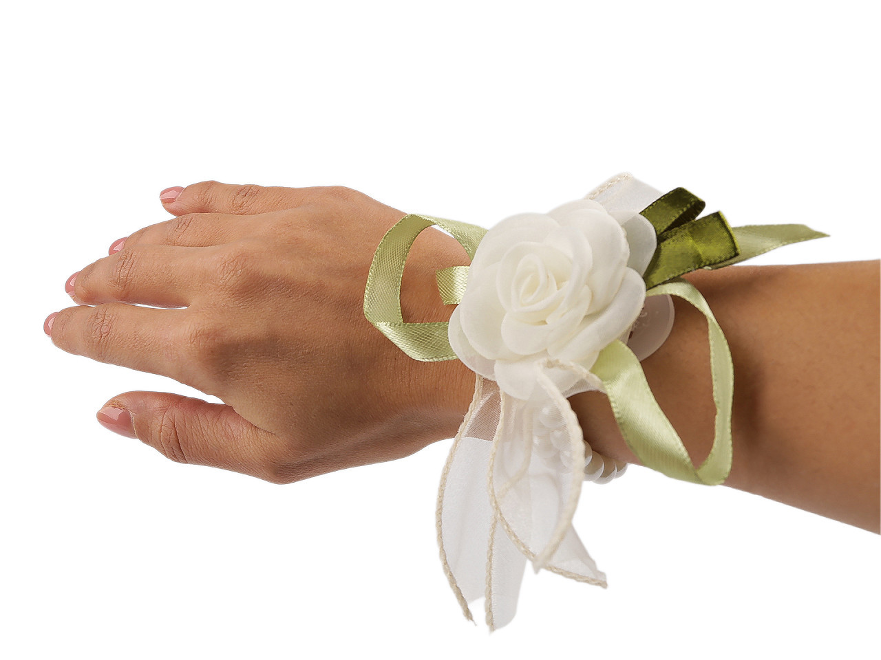 Perlový svatební náramek pro družičky s romantickými květy. Dodejte svému svatebnímu dni nádech elegance s perlovým náramkem zdobeným jemnými růžičkami, hortenzií a drobnými větvičkami. Tento pružný náramek s univerzální velikostí je ideální pro družičky, svědkyně, maminky nevěsty nebo každou ženu, která miluje romantické doplňky. Střed tvoří tři růžičky o průměru 3,5 cm, doplněné květinovou kompozicí o celkovém průměru 7,5 cm. Lesklé perly o průměru 0,8 cm dodávají šperku luxusní vzhled a pohodlné nošení po celý den. Perfektní volba pro svatbu, ples či jiné slavnostní příležitosti.