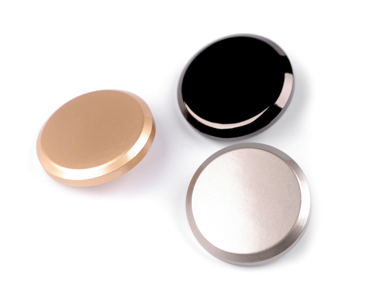 Ploché kovové knoflíky se spodním přišíváním jsou vhodné k našití na saka, kabáty, vesty nebo také na doplňky jako jsou kabelky či tašky. Vynikají vysokou kvalitou. Knoflíky nejsou ploché celé, okraje mají zaoblené.