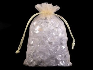 Průsvitný dárkový pytlík je vynikající na zabalení menších dárků, například mýdla, drobné kosmetiky, kapesního zrcátka, malého šátku, drobné keramiky apod. Hodí se i k uschování voňavých sušených květů. Je vyrobený z jemně lesklé organzy.