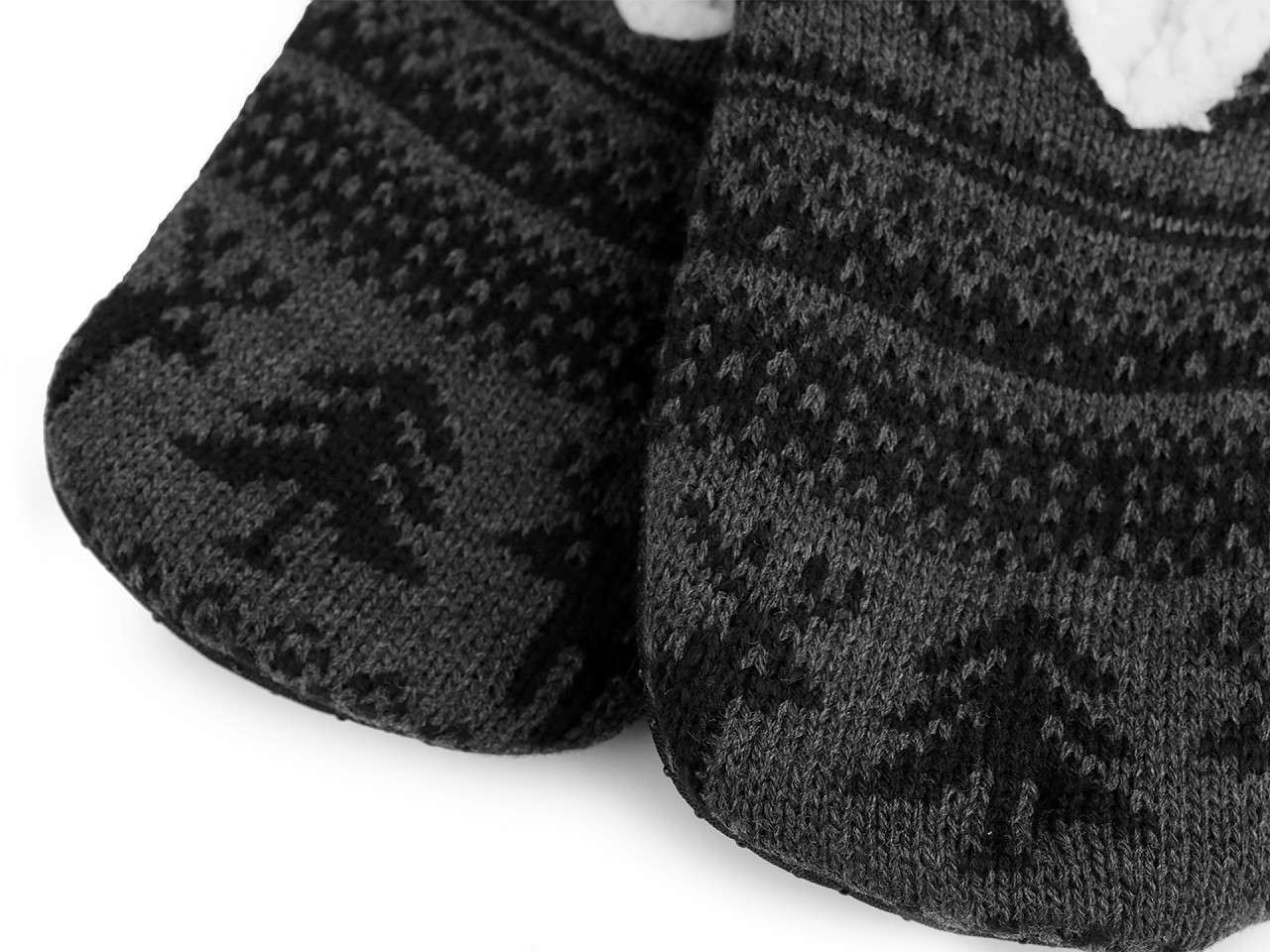 Dopřejte si pohodlí a teplo v chladných dnech. Tato pánská zimní domácí obuv s protiskluzem je ideální volbou pro každého muže, který ocení komfort a bezpečí. Vrchní část tvoří stylová pletenina, zatímco vnitřek je vybaven měkkou chlupatou podšívkou, která věrně imituje vlnu a zajišťuje maximální tepelný komfort. Protiskluzové gumové tečky na chodidle spolehlivě zabrání uklouznutí i na hladkých podlahách. Materiál: akryl, polyester, polyamid. Upozorňujeme, že složení na štítcích se může lišit. Užijte si pravou domácí pohodu s touto zimní obuví.